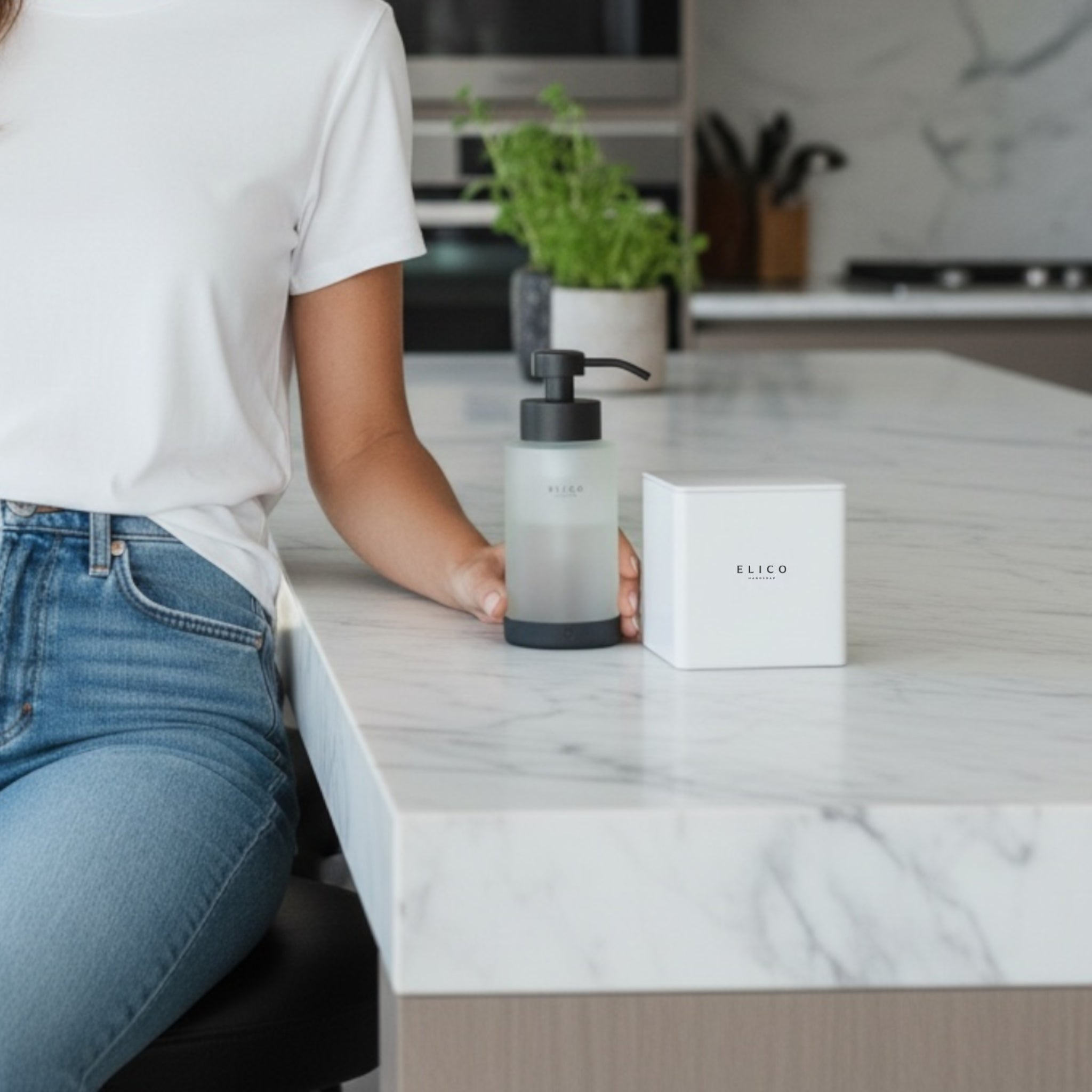Med en såpedispenser i glass og refills pakket i nedbrytbar emballasje, kan du enkelt bidra til å redusere plastforbruket.